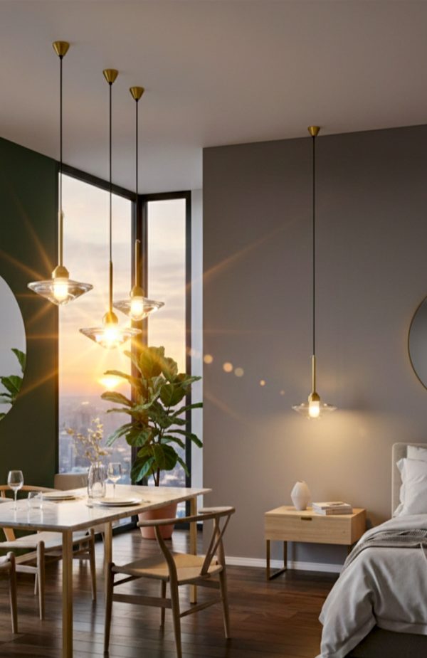 Polyvalence déco : installation possible en duo au-dessus d’une table de chevet ou en série au-dessus d’un îlot de cuisine