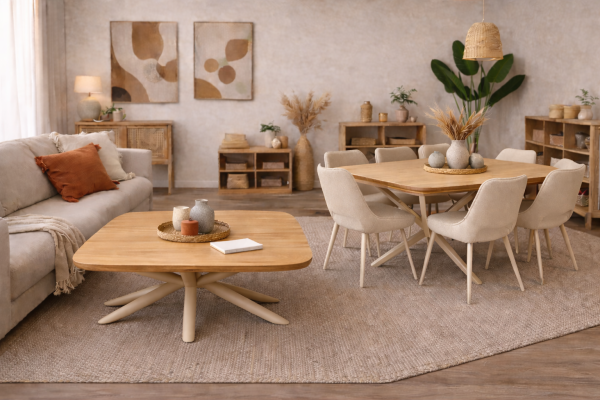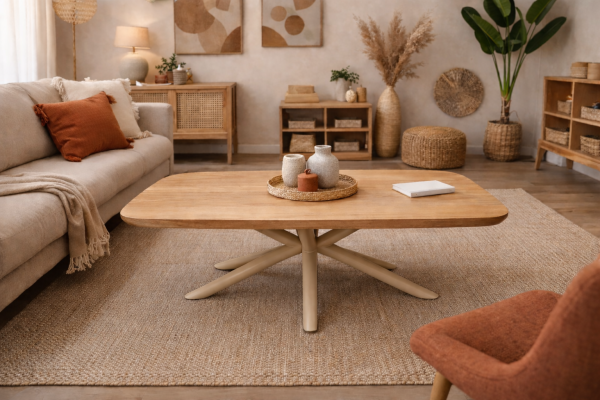 TABLE BASSE BOIS PIEDS METAL COULEUR BEIGE